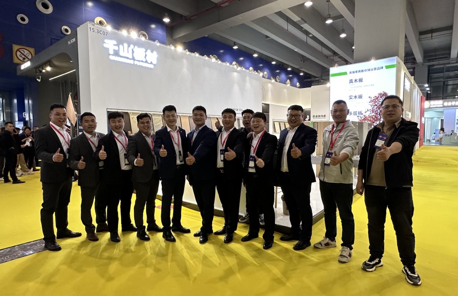 千山家具板憑借高品質、高顏值、高環保的產品特點在展會上大放異彩,展位人頭攢動,十分熱鬧!觀展來訪客戶紛紛對千山產品表示贊賞和支持。