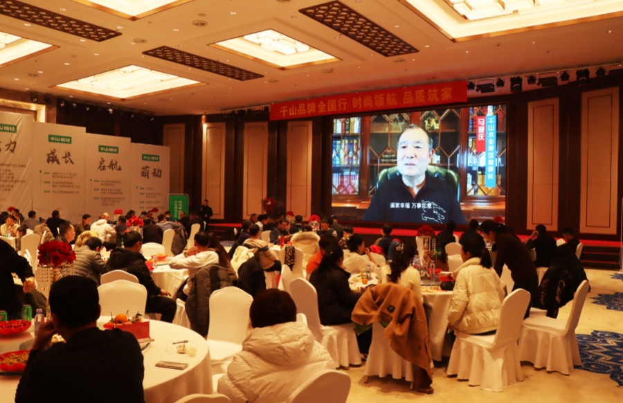 2023年12月26日,千山品牌全國行在山東泗水正式拉開帷幕。千山品牌事業部總經理王松、山東直營倉銷售總監楊秀山、泗水沐陽家居負責人宋肖東以及當地裝飾公司等百余位伙伴齊聚一堂,共同見證此次首發盛會。