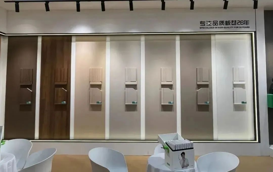 展館內,千山板材立柱以多樣形式展示了2024全系列潮流花色,涵蓋木紋系列32款、純色系列41款、布紋石紋系列8款、高定系列10款、數碼打印系列16款。
