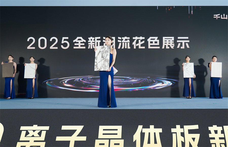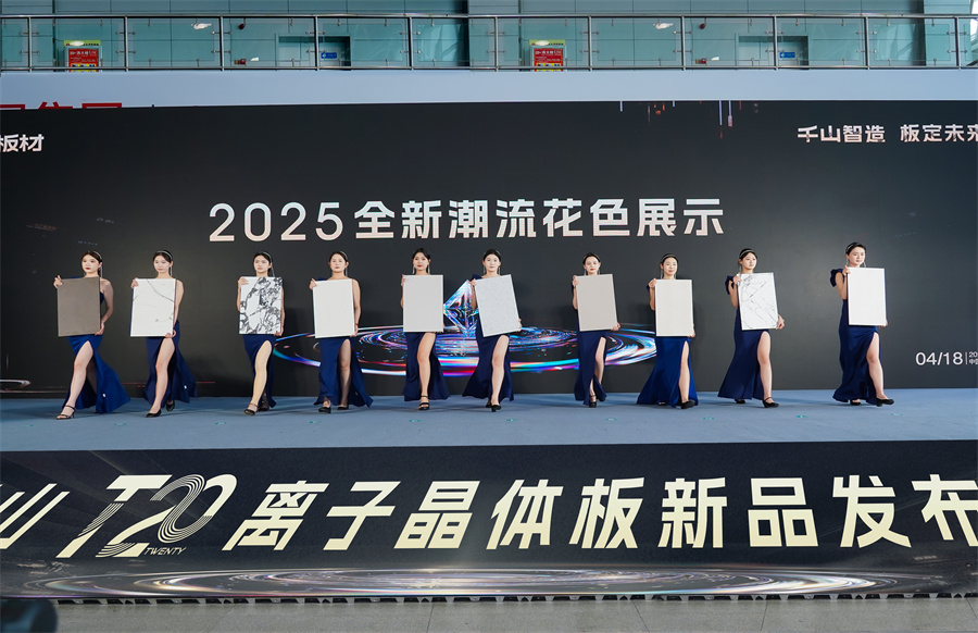 領導嘉賓們共同登臺,進行T20離子晶體板首發的啟動儀式。千山T20離子晶體板的正式上市,不僅標志著千山板材正式邁入“離子晶體板”時代,更預示著千山向著更高智造標準跨越式進階。